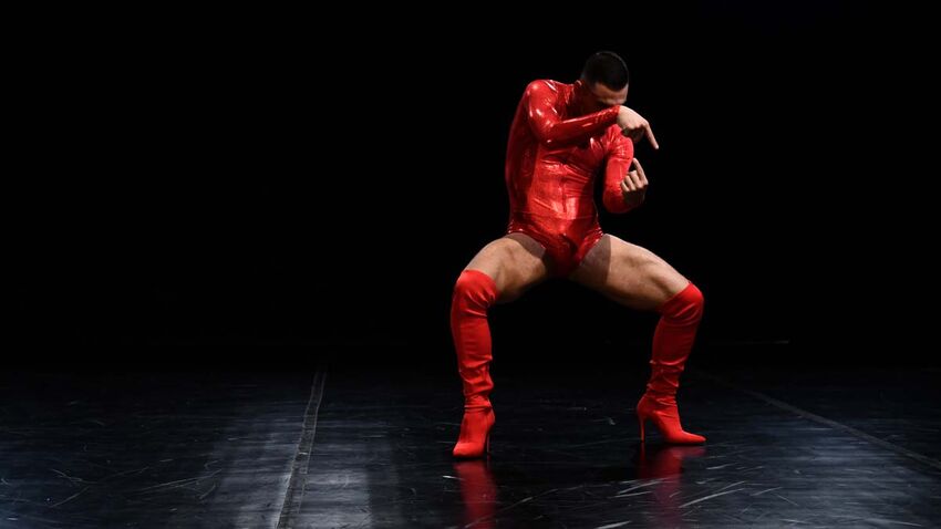 Hire me, please is a visually spectacular and multidisciplinary performance by Panos Malactos decrying the audition process and the exhaustive toll it takes on an aspiring dancer.