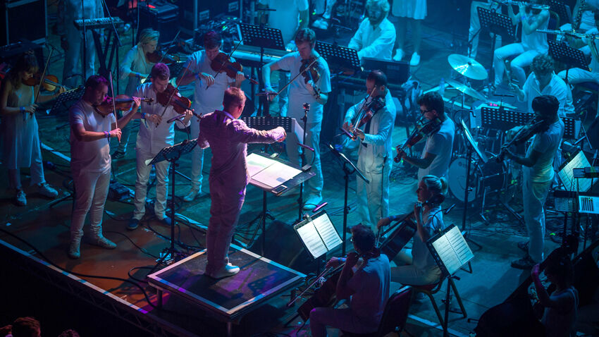 Conducted by the award-winning Charles Hazlewood, the 39-piece ensemble contains a bank of Moogs, drum machines and live percussion, assistive technology, alongside bass oboes, an electro-harp and a suite of orchestral strings and brass.